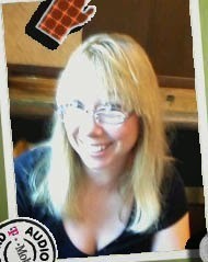 Here's a picture of her with an oven mitt. I took it because that day she was wearing two pairs of glasses. I'm not sure why the mitt is there -- and like I said, I took the picture. The phone added it--Barnes and Noble's cafe doesn't have mitts floating in the air. The glasses are just one two of those things that happened. Or so she said.
