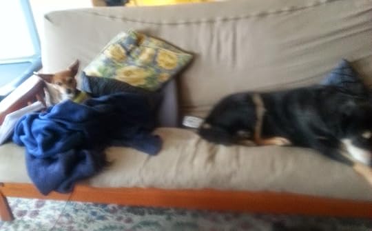 Just now I was trying to get a picture of the dogs and hit a button that flipped the view around. From cute little pup to--bam--doughy-faced, double chinned me.