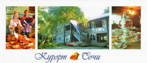 Er staat een theehuis op in Sochi, een soort Russische afternoon tea dus! :-) Op mijn profiel bij Postcrossing heb ik namelijk verteld dat ik gek ben op thee! Nog nooit zoveel thee-gerelateerde dingen gelezen dus! Hoog tijd dat ik dat profiel eens wat aanpas. Maar het ziet er wel heel mooi uit, dat theehuis zou ik wel eens willen bezoeken.
