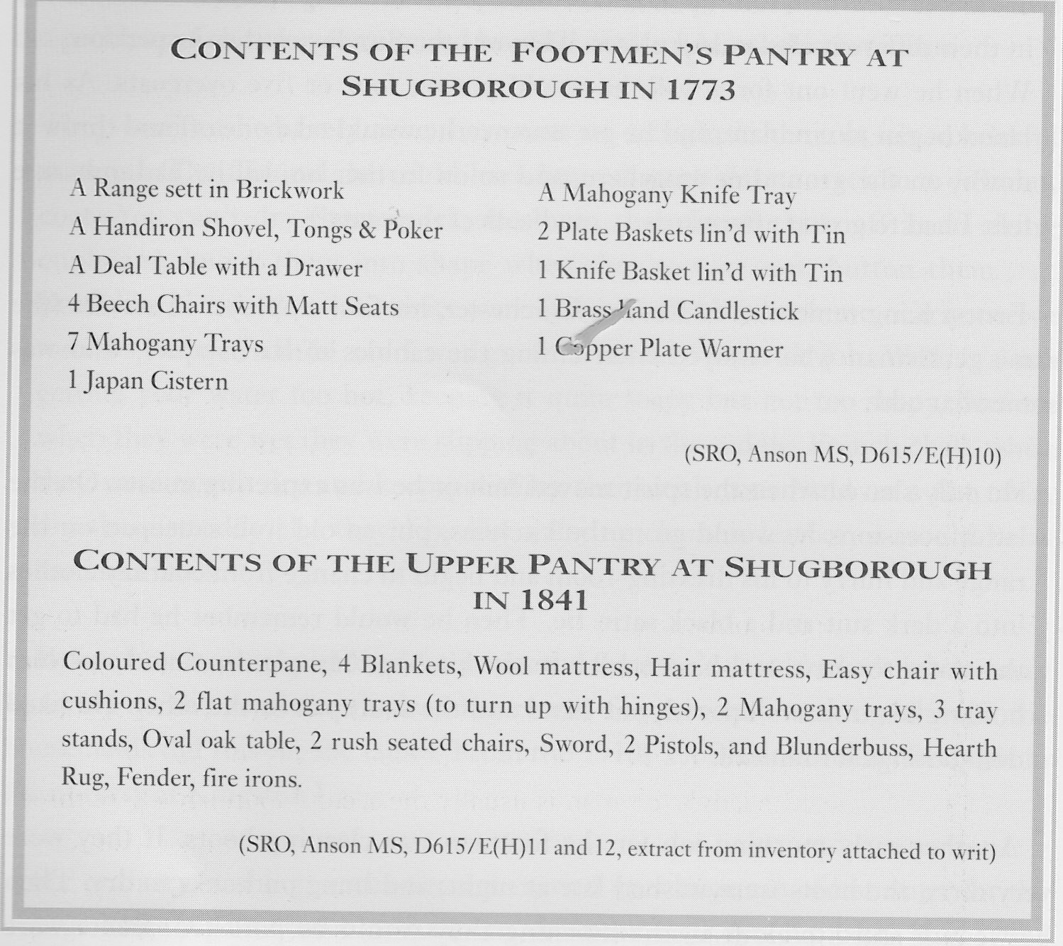 The life of a gentleman servant was not unlike a bird shut up in a gilded cage. They were chosen for their appearance and paid according to their height. Their livery was expensive. In 1863, a single bill for livery items bought by the 2nd Earl of Lichfield at Shugborough, totalled: 120 pounds 7 shillings and 10 pence. It was usual to provide one or two livery suits a year, plus court livery. In many houses, it was the custom to wait to see if a new footman was suitable before measuring him for livery. In some houses, a new male member of staff was shown a variety of second hand livery suits, hoping that one would fit.