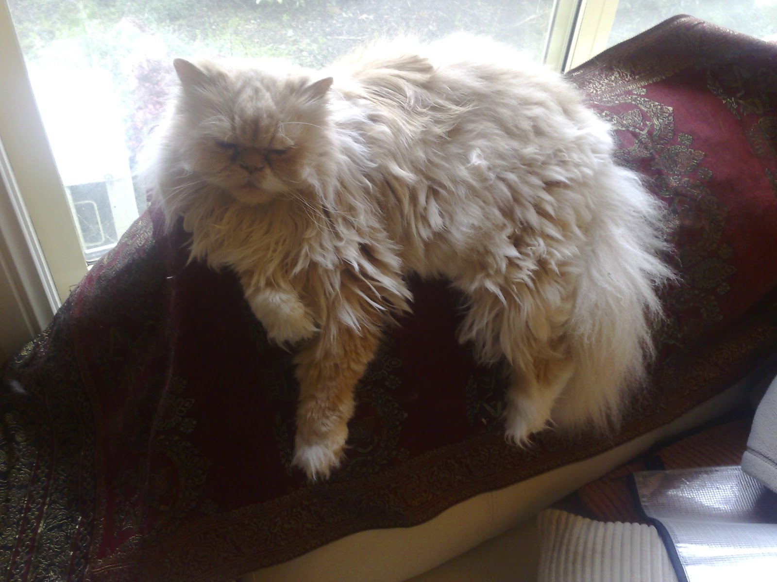 We live in the countryside outside Sydney, Australia. A creek runs along the bottom of our land. In the recent heavy rain it had almost broken it's banks. Around lunchtime, our cat, Africa went for a wander. She was never away long, she's a home loving cat. A champagne Persian, she has a lovely nature and my husband and I adore her. When the hours passed and she didn't come home, I began to worry. I walked around the neighborhood calling her. We get the odd snake here and I worried that she might be hurt, or worse. I checked the roads and was relieved when I didn't spy her little furry body. It grew dark, my husband was on the expressway returning home and I was now convinced that something had happened to her. I walked down through the grounds of the neighboring house in the dim light to the creek calling her. Disheartened, I turned away, to return to the house and await my husband with the distressing news. Halfway up the garden I heard a faint mew. Racing back to the creek I called her. She mewed again. I spied her through the gloom standing on the opposite bank. The creek was too deep for me to cross. I wasn't sure what to do, to go by road meant losing sight of her for a while. Before I could decide, Affie decided for me. She swam across the creek! I have never seen a cat swim, and I knew Affie had a strong aversion to water. She followed me meekly home. She was exhausted and covered with thick mud! Something had obviously startled her possibly a snake. She'd fallen into the creek and, finding herself on the opposite bank, then got lost. I ran a warm bath and stood her in it. She quietly let me wash the grit and mud from her fur, an amazing thing in itself.