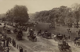 In the 18th century, Rotten Row became a popular meeting place for upper-class Londoners. Particularly on weekend evenings and at midday, people would dress in their finest clothes in order to ride along the row and be seen. The adjacent South Carriage Drive was used by society people in carriages for the same purpose. In 1876, it was reconstructed as a horse-ride, with a brick base covered by sand.