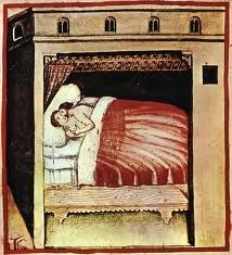 Hazlitt wrote that during the late thirteenth-century reign of Edward I, to add insult to injury, "in Cornwall it was then a manorial custom ...that she should find surety to the lord o the said manor to return to it after the death of her husband, if he predeceased her." Another annoyance face by newlyweds was a delay imposed by the Church during medieval times until their bed was "properly blessed." The new married couples were made to wait till midnight after the marriage day, before they would pronounce a benediction, unless handsomely paid for it, and they durst not undress without it, on pain of excommunication.