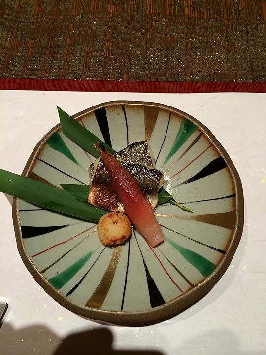 The waitress carried in a tray filled with dishes, knelt and set it on the tatami. She began placing them on the low table, one by one by one, delicately, wisely, like notes from a jazz solo. Each dish touched down on the wood with a light thunk as the room filled with the tenderly intertwined aromas of fresh fish, steamed veggies and grilled fish. It took the next two delicious hours to load and unload all the food. Each dish could be polished off in a couple bites, but the slowly revealed series felt endless.