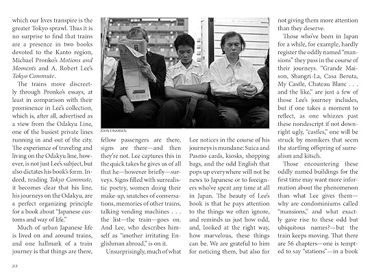 MP: In the novel, the American guy who is escaping Tokyo says that at the airport. I feel that way sometimes at the airport, too, going in AND going out! But, living here, it all starts to make sense in a way, so I would not say it’s wacko. Some things are still strange to me, but I like that sense of strangeness. I find a little discomfort energizing, and motivating. Tokyo is a very lonely place, though, and that’s what many scenes express. Tokyo is a split way of life where you are massed into large groups, on the train, at work, in social outings, but you still spend a lot of time alone. Maybe that’s the wacko side?