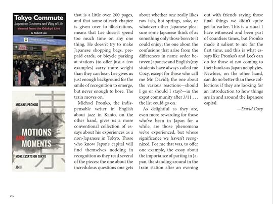 Michael Pronko: I see all sorts of people. Whenever I talk about mysteries or thrillers, people often sheepishly confess how much they love reading them. All novels are mysteries in some sense. I see readers interested in Tokyo or Japanese culture, since Tokyo is a big mystery, or millions of small mysteries. Thrillers and mysteries are very ethical at their core, despite the awful things that happen. So, I think people who are mystery readers have a sharp sense of justice and maybe a need to see things set right, even when they can’t be. I also see readers who just love a great story.
