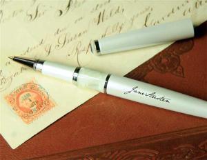 • A modern-day ballpoint pen bearing Jane Austen’s autograph, perfect for writing your own clever correspondence.