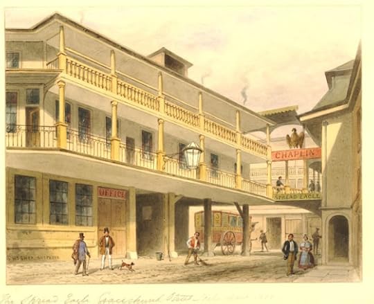 The interior yard of the Spread Eagle Inn on Gracechurch street, about 1850.