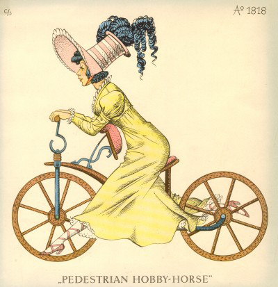 Filed under: Regency Life, Regency Manners and Customs, Regency Pastimes Tagged: Bicycle, Bicycle History, Bike to Work Day, Draisine, Frederica, Georgette Heyer, Marquis of Alverstoke, Pedestrian Curricle, Pedestrian Hobbyhorse, Regency Era