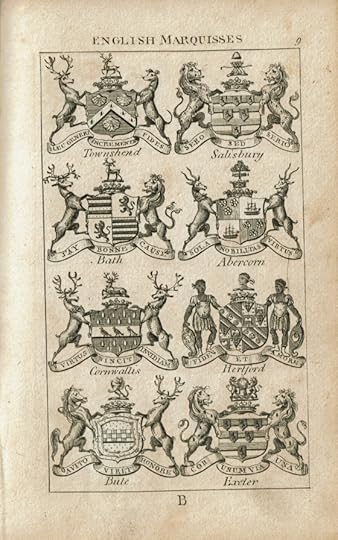 My 1806 edition includes a handy explanation of heraldic terms. I’ve spent many enjoyable hours poring over these pages with a magnifying glass trying to reason out for myself what each symbol meant on a given coat of arms.
