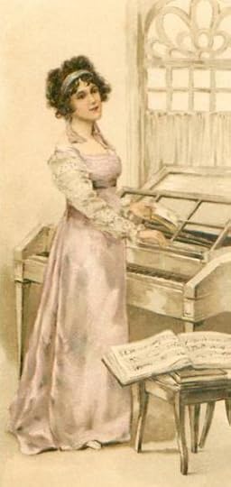 We all know Mary Bennet loved to play the pianoforte and the image below made me think of Mary (although I believe Mary would have worn her hair in a much plainer style). Added inspiration: I love the intricate mullions that divide the panes of glass in the window behind Mary.