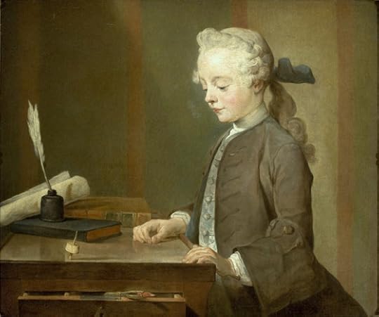 In the book, ten-year-old boy Daniel Westover receives a gift of new toys from Kitty Bennet. This 1774 painting by Jean Simeon Chardin shows a boy about the same age as Daniel Westover, playing with a small top, similar to the one Kitty would have given Daniel.