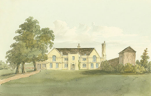 When I wrote the scene where Caroline Bingley calls upon Mr. Penrose at the vicarage, I had in mind this lovely watercolor of Oakham Parsonage by John Hassell: