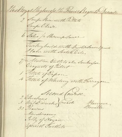 One of the treasures I found on the site is a hand-written book of menus documenting the meals served to the Prince of Wales and his guests at Carlton House.