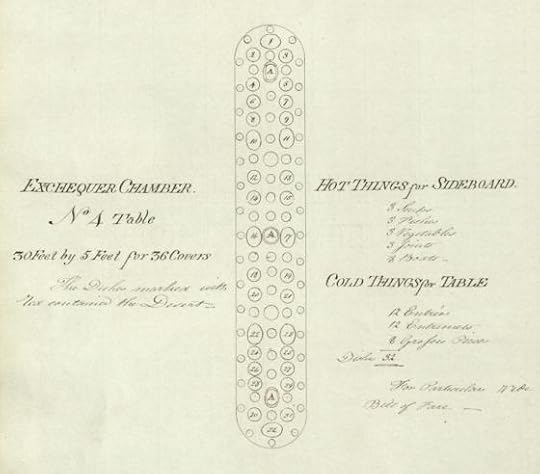 There are drawings of almost fifty different dining tables, showing the place setting for each guest and where on the table each individual serving dish was to be placed.