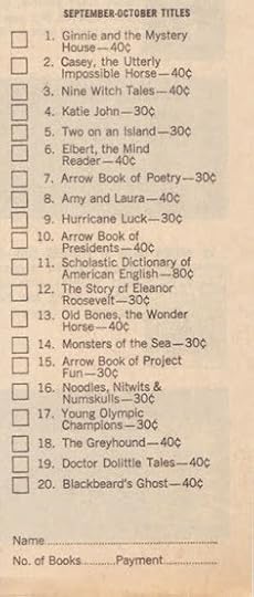 It was a four-page listing of paperback books children could purchase. For me (growing up in a family that didn’t believe in giving children an allowance) that meant I had to earn the money to buy books. I did extra chores for my parents and neighbors, like pulling weeds for a quarter and sweeping out the garage for fifty cents. I essentially volunteered to do any job that no one else wanted to do.