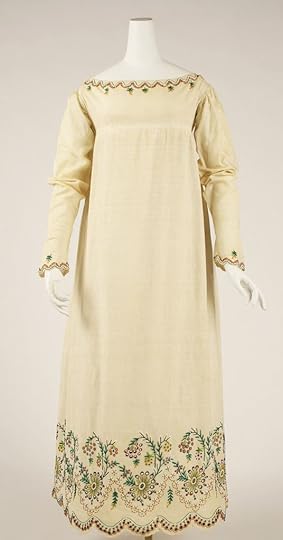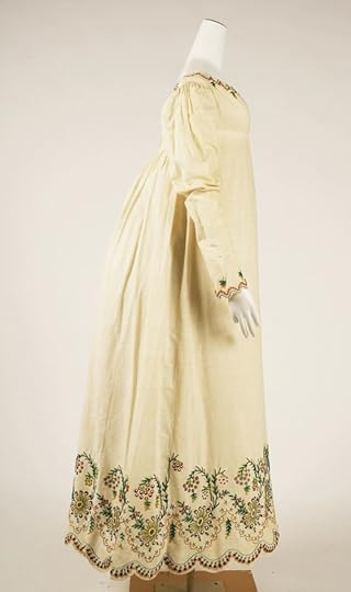 This, I thought, is a very nice linen gown, perfect for a warm summer day; and it has some lovely embroidery along the neckline and on the hems of the sleeves and skirt.