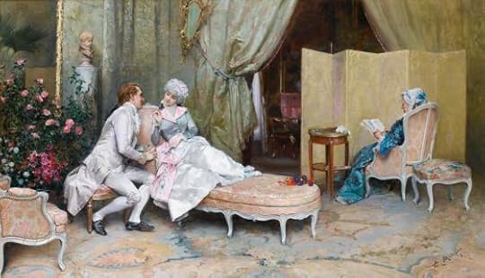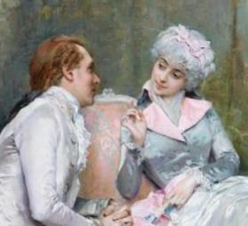 Actually, it’s a painting titled “Flirtation,” by Raimundo de Madrazo y Garreta. (Click on the image to see a larger version.)