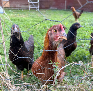 Camilla Chicken from a couple days ago. Photo courtesy of my daughter.It's lovely to have family present; my eldest and the grandgirls are here for the week. My oldest granddaughter likes checking on the chickens, while youngest grandgirl treks about with Grandpa on trails. Meanwhile I've learned about KPOP Demon Hunters, how AI can produce gluten-free, dairy-free, iron-fortified, red-meat free meal plans in the blink of an eye, not batting an eye in also excising seafood, tofu, and coconut milk from said menus. Definitely twenty-first century living even tucked away on the North Coast.