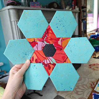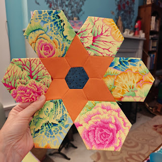 Hexagon block for Alexandria, a wonderful ongoing process!Quilts. And novels, ahem....