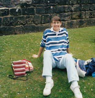 Yours truly from summer of 2001. I still have the shirt and canvas bag behind the purse.If I write about calamities, am I hoping to ward them off within my personal life?