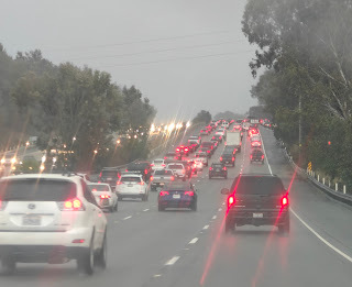 SF Bay Area traffic last night.This weekend my hubby and I are back in the SF Bay Area to celebrate our youngest grandgirl's birthday, as well as partake of some early familial Christmastime shenanigans. It's nice to reconnect with beloveds at this time of year, even if only for a few days. Makes all the difference in the world when we go our separate ways, as we all invariably do.