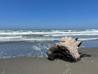 Our current stretch of the Pacific here in Humboldt County; snapped this photo yesterday as the tide was creeping forward.In writing this story, I attempted to harness what I had just experienced as well as paying tribute to a woman who I have called my sister since marrying her little brother over thirty-five years ago. We can't truly know another's pain, but as a storyteller, I can imagine a similar scenario, then fashion through fictional characters a path of healing for myself and whoever reads the yarn I've spun. And because I follow the Spirit as I spin, a magical manner of remedy sometimes emerges, even if at the time of crafting to drop aliens as the answer was more than a little crazy. But life is steeped in the inane, and better to laugh than to cry if the mood so warrants.