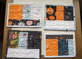Mug rugs!Family is coming this weekend, so I'm trying to finish up some projects before their arrival. Yesterday I sent out one Halloween quilt as well as a table runner and coasters. Then last night I completed the machine quilting on another blanket, attached the binding and today I'll finish the binding, then add some hand-quilting. Meanwhile I'm getting to grips with a new phone and pondering my next novel. Time waits for no one, let me just say.