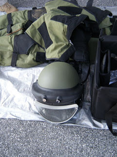 Hazardous Device Team's Armor Obviously I will barely be able to scratch the surface in this blog post, but I'd like to highlight some of the things I did and learned while at the Academy. As always, while I had a camera and even carried it with me at all times, when I arrived home, I discovered I'd taken almost no pictures. Bear with me. (Funny aside, I wrote "Bare with me" at first, then I heard Cera's [one of the Tri Mu] voice in my head going "seriously, you want all your blog readers to get naked with you?" My CP has invaded my inner thoughts, what does that mean? lol.) Okay, on to information from the Writers' Police Academy: