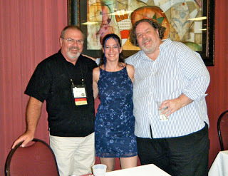 Lee Lofland, Kalayna, and Jonathan Hayes after the BanquetI have pages of notes from those events, particularly from Jonathan's lecture on decaying bodies, but as I wouldn't want this blog to end up with an "R" rating due to violence and gore, I think I'll keep those off this space. Moving on.