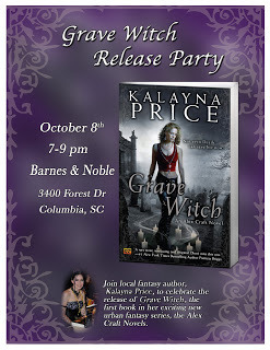 We are one day from the official release of Grave Witch, and I can hardly believe it. (Actually, according to the countdown widget we are at just under 10hrs because the book is technically released at midnight--but bookstores won't be open so lets say a day.) Reports of sightings are pouring in, and I'm already finding myself checking the amazon and B&N stats (even though those don't really tell me how well the book is doing). Reviews are also really cropping up now, and I'll link to some of those in a minute. In the meantime, I want to point out the two big events happening this week: