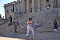 I'm not going to say too much here, but if you remember my post on World Hoop Day last year, you know that the event is not only to celebrate the joys and benefits of hooping, but to raise awareness and spread the fun. All around the world on 10-10-10 at 10:10 am, people were hooping in their communities. In my home city, we gathered at the State House and jammed for a full hour.