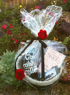 ConCarolinas starts tomorrow (check out the last post for my schedule) and I've spent most of the day preparing. There were shirts to screen print, buttons to press, and outfits to arrange. And of course, that gift basket I mentioned in the last post. Want to see?