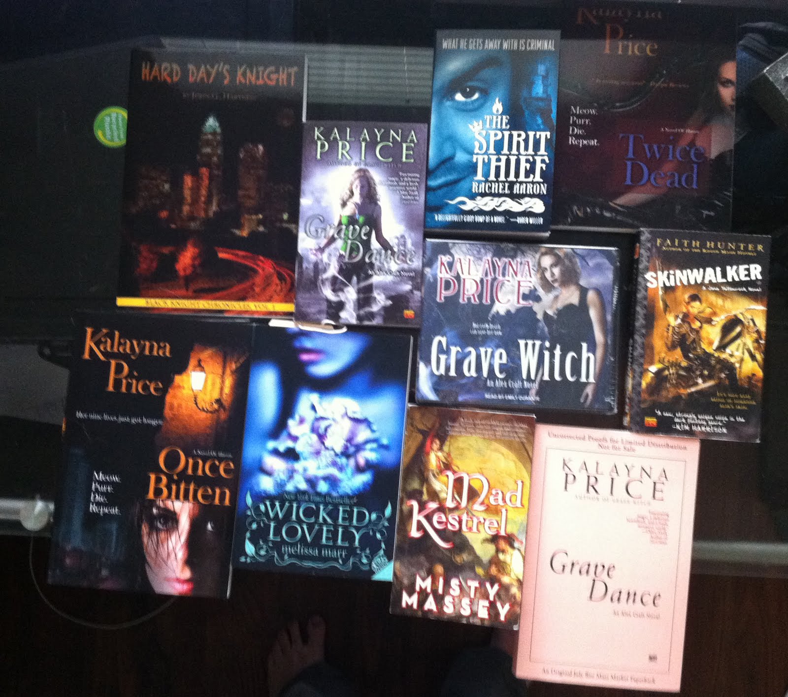 Wicked Lovely by Melissa MarrMad Kestrel by Misty MasseySkinwalker by Faith Hunter*Hard Day's Knight by John Hartness*Spirit Thief by Rachel Aaron*Once Bitten Twice Dead Grave Witch (Audio release)Grave Dance (my very last ARC)