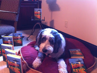 Homicidal Aliens & Other Disappointments has been released after a short sentence and then some longs ones and then some more short ones all got together and made a book.I'm happy to announce that Homicidal Aliens & Other Disappointments--a work of imagination-- has made it into the real world. I love books and I'm proud and happy to have made one. Still I accumulated a lot of rejections along the way --each one, as Steinbeck once said, a little death. Rejection hurts. But all it takes is one acceptance and the rejections don’t really matter. I don’t think that JK Rowling is too broken up over the dozens of rejections of Harry Potter. A few things have happened since that have made those rejections pretty unimportant—except to the people who rejected her book.So here’s a site worthy of a look—always fun to read about the rejections of books that went on to become classics or popular or both...http://www.literaryrejections.com/best-sellers-initially-rejected/AND“Outside of a dog, a book is man's best friend. Inside of a dog it's too dark to read.” Groucho MarxHere’s Merlin excitedly celebrating the release of Homicidal Aliens (hmmm…that doesn’t sound good but is)…