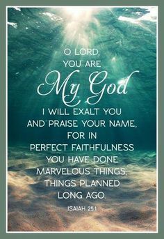 Lord, you are my God;I will exalt you and praise your name,for in perfect faithfulnessyou have done wonderful things,things planned long agoIsaiah 25:1