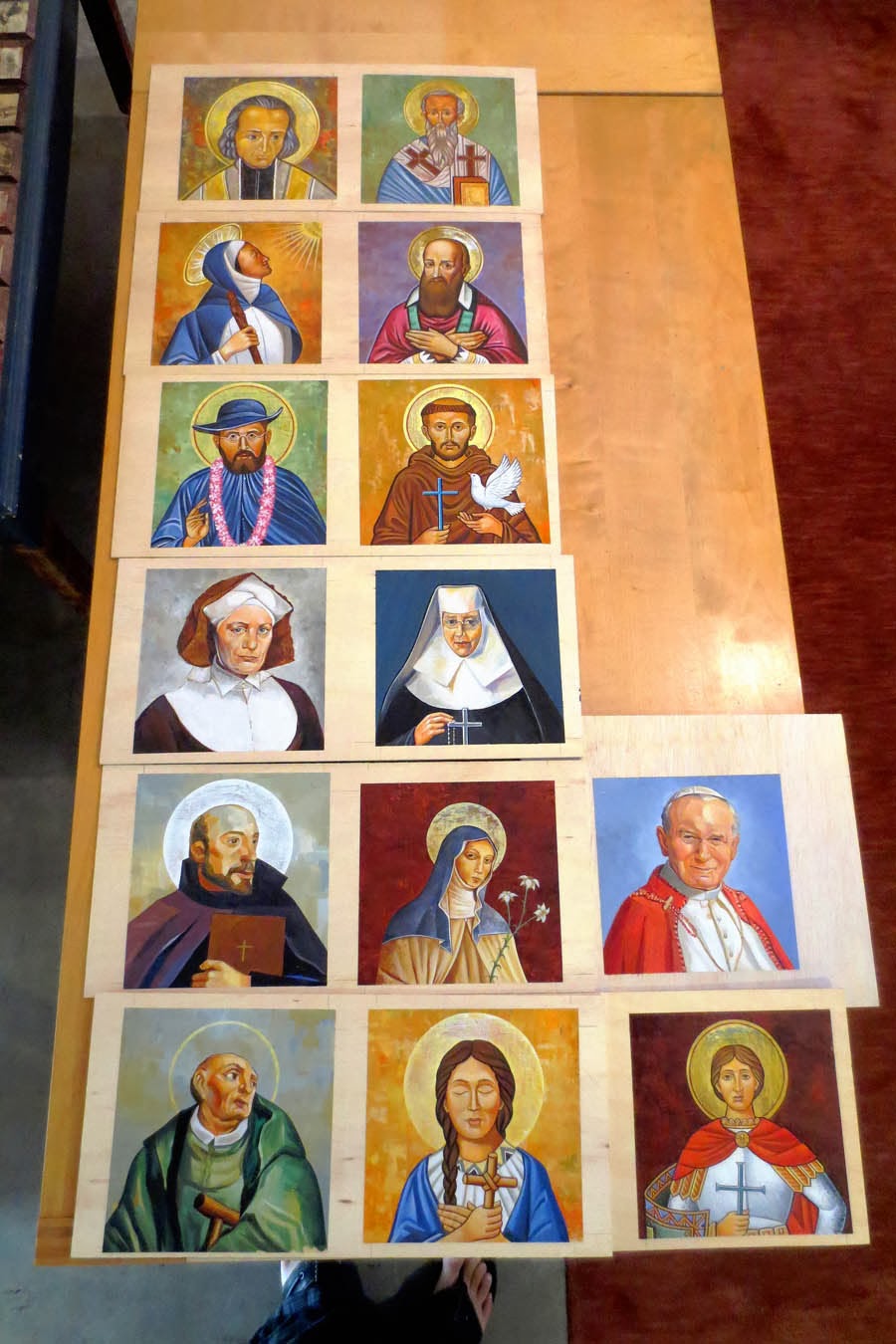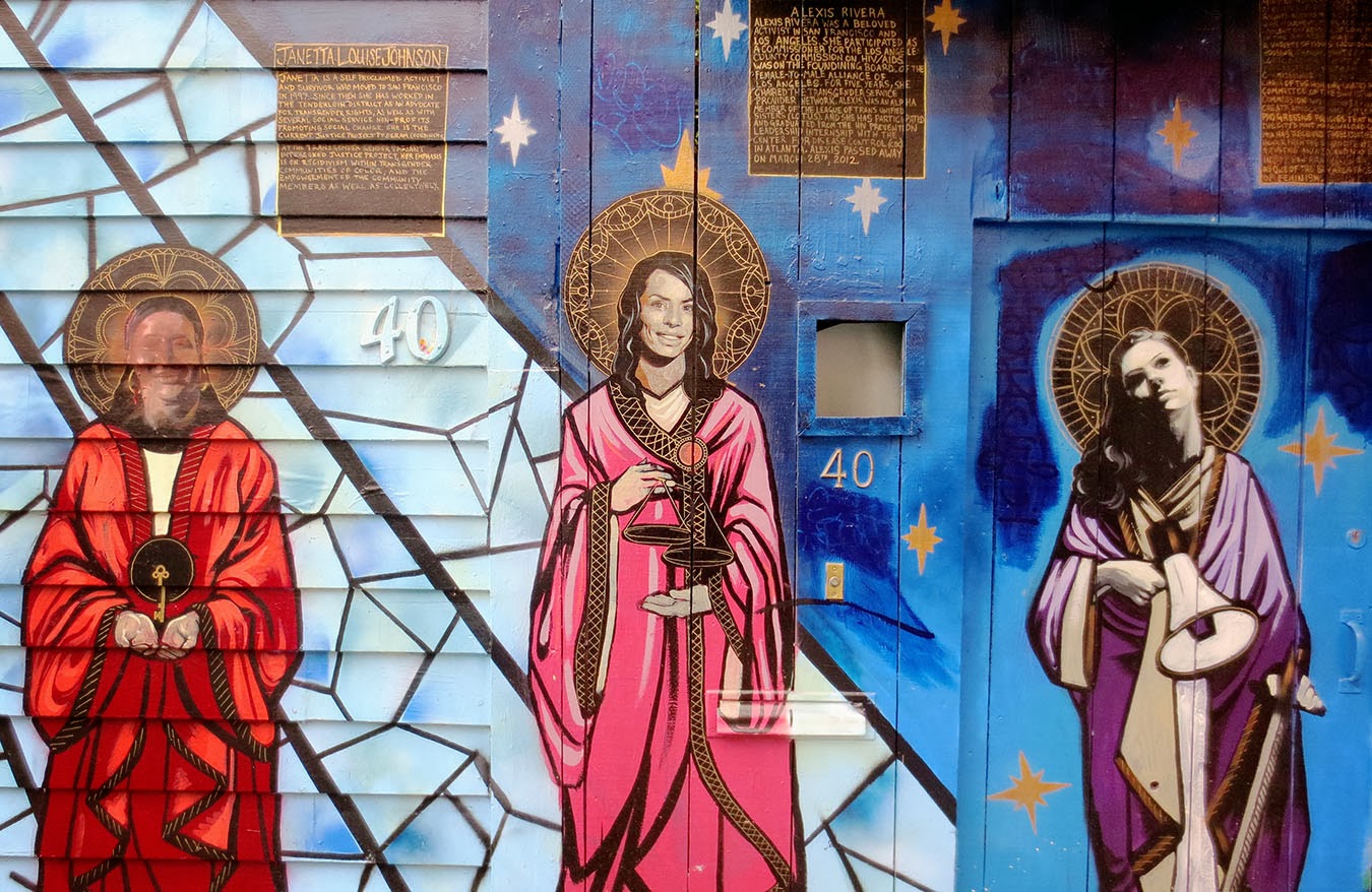 This beautiful mural in the Mission District beckoned me to return to the studio. I painted a series of Saint portraits for Loyola University, followed by a personal piece fueled by the textures of the city.