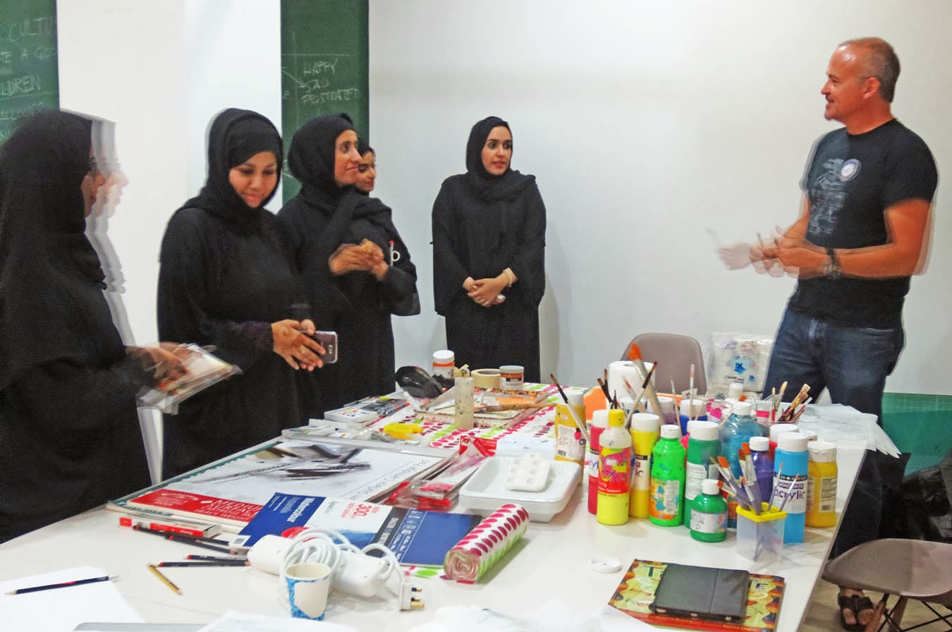 I've just returned from nine days in the Middle East, invited by Her Excellency Sheikha Bodour al Qasimi of Sharjah. This emirate is considered by UNESCO as the cultural capital of the Arab World. Their cultural policy is one of the most developed in the Arab world for it's support and investment in art and culture. Sharjah is home to 17 museums and the Sharjah Biennale exhibition of contemporary art. I was fortunate to attend the Sharjah World Book Fair and had the great opportunity to work with a dynamic group of young local artists. Together we worked to create a poster for the 2015 Children's Book Fair. This was my second trip to Sharjah and I am so fortunate to have connected with many new and old friends. I'm grateful to the Princess for her kindness and visit to our workshop. She is a true champion of books.