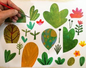 I’ve found that spending time with and thinking about nature grows creativity and imagination. I’ve always liked watching animals in nature? There’s a secret place our family likes to hike in San Diego we call The Gulch. In Spring there are small rabbits and hares with long ears running from burrow to burrow. Once we watched a tiny fuzzy caterpillar climbing up through piles of sand determined to get to a patch of bright yellow flowers. Perhaps he was dreaming of becoming a yellow butterfly. I like to think about the colors and things I see in nature and put them into my art.