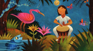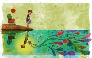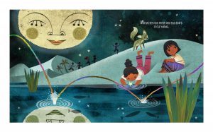 When you stretch your imagination you can come up with ways to communicate how someone feels or show their emotions. In the image above from the book The Day You Begin, a shy boy looks at his reflection in the water and sees his potential to be an amazing storyteller.