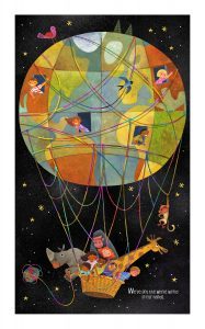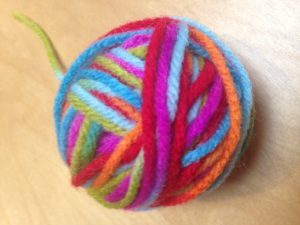 To tell the story I used a multi-colored ball of yarn to represent the ties that bind humanity together.