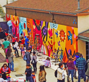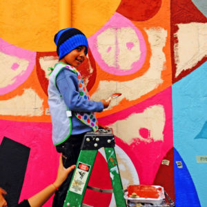 COLORS SWIRL! Painting a community mural at Shore Acres Elementary School.
