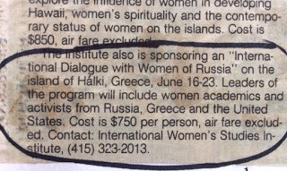 I keep mentioning the women's group, and there are so many stories about the seminars we participated in, the trips we took together, the women themselves. Many of them had written and presented papers on women's issues in the post USSR Russia, so our seminars focused on topics like: Feminism East and West, Can Russian Women Create Themselves as Citizens of a Democratic,Capitalist State?, Soviet Women at the Crossroads of Perestoika, The Role of Women in Rebuilding the Russian Economy.