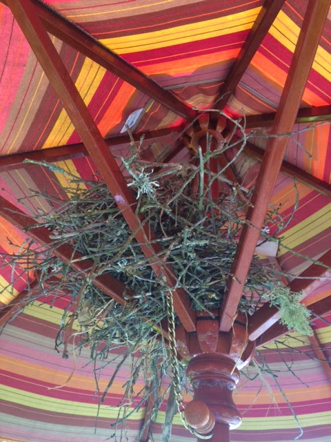 This is where I wait for the new birds who find my umbrella a safe nesting place.
