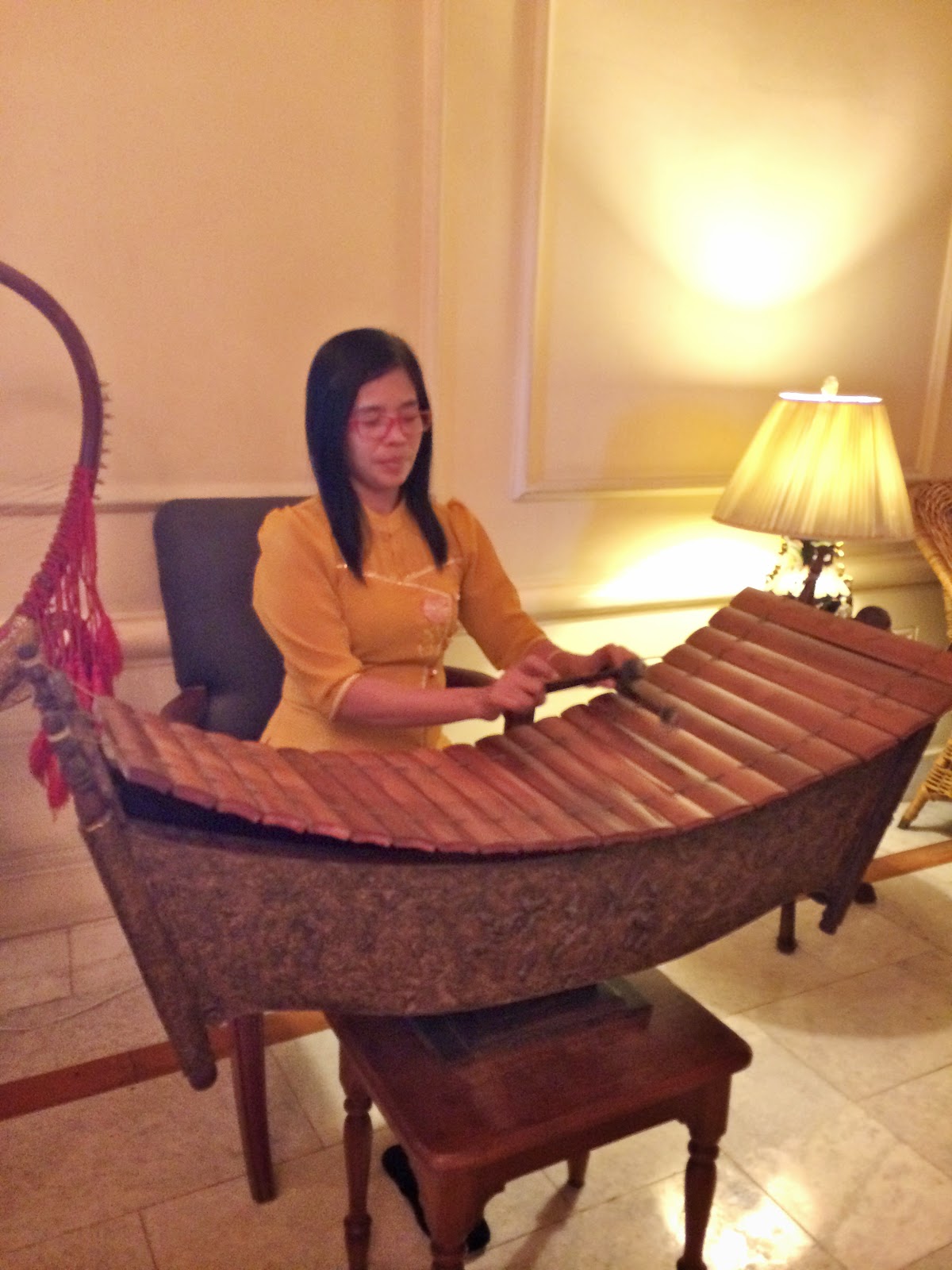 In the lobby a young lady played the Xylophone, so while I sipped my very expensive coffee (5000Kyat which equaled $5), I listened to music and pretended to be in the early 1900's, back in a time when the city was called Rangoon, wearing an elegant gown, carrying a parasol on my arm.