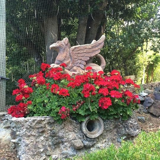 The stone gryphon nested in a bed of bright red flowers. His front paw raised, his wings tucked back, he stared over the wide lawn and the terraces of lavender. Enchanting. Elegant.
