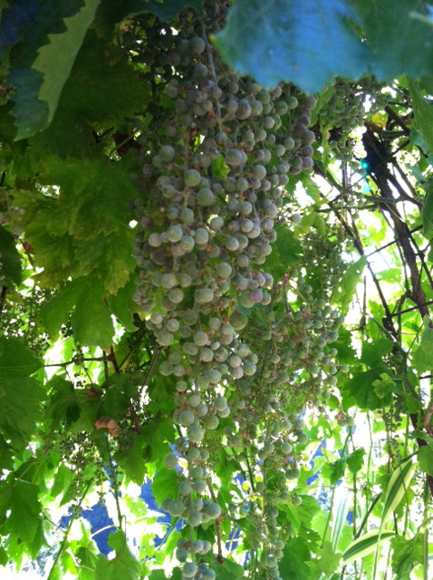 A few years ago I planted grapes, so they'd shade the pond in summer. Actually, the fish put in a request. So now I get fresh grape leaves for my dolmas and lots of grapes. After eating all we can, what then? Here's the story in pictures.