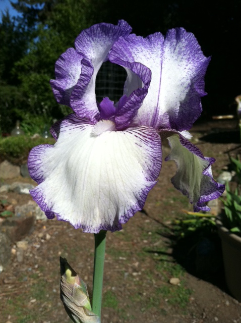 A first Iris all white and tinged with a royal purple. Loved his kingly arrival.