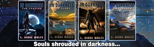 That brings me to my current genre and the four-book series that is wrapping up, In Darkness. While never a fan of the “alpha male” stories, I’ve loved stories about Dracula and other supernatural beings. Since I also like a good romance grounded in a good story, I dove into a series of books that would highlight a unique paranormal romance. The first, The Vampire, is not your usual “Dracula” story. It’s more of an adventure like The Hobbit. The Shark – well, I’ve never seen a romance involving one, so that was a really fun story. (And NO beastiality.) The Werewolf was a sweeter take on the shifter tale. And finally, The Alien, which comes out next week. It’s a story I wrote over 30 years ago that gained new life, and while the “creature” is an alien, it still has supernatural elements.
