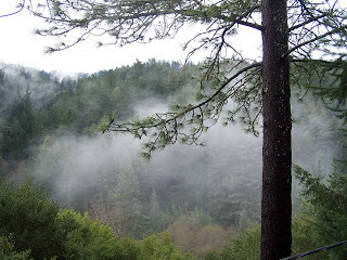 I couldn't resist going outside when I saw this through my window. I pulled myself away from my computer and a story that keeps wanting to be written and walked a bit. It's always a wonderful surprise to find that I when I step out my door I'm immediately in a place that offers so much: chilled air to freshen my face, a canyon filled with redwoods to make my writer-eyes relax, a creek that plays like lovely music along my path.